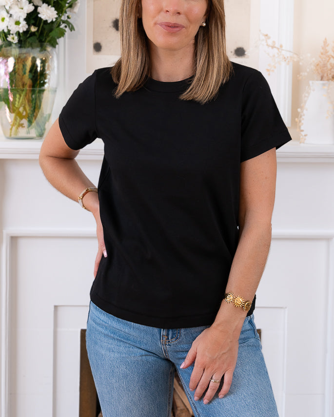 Black round neck super soft cotton classic tshirt with short sleeves.